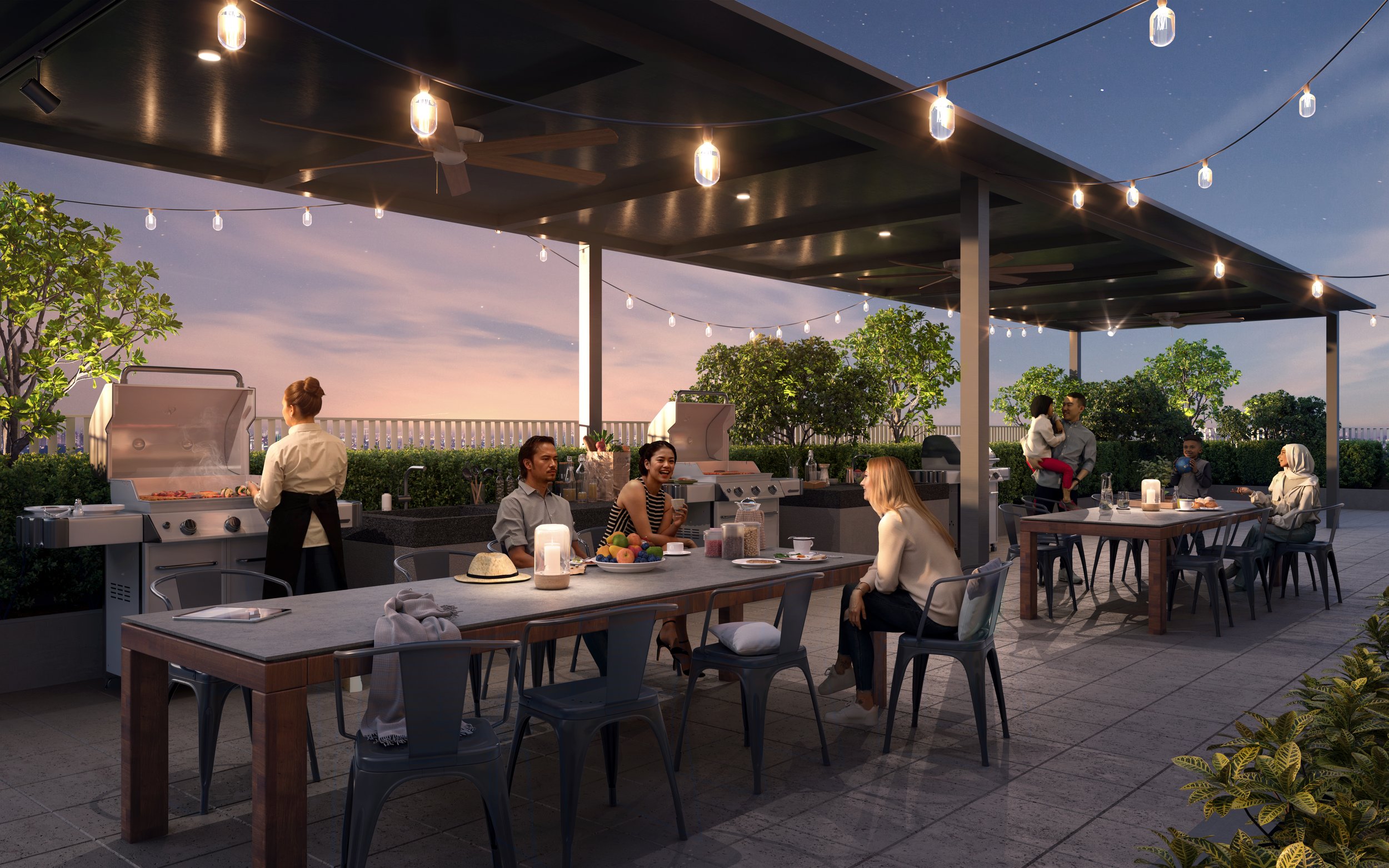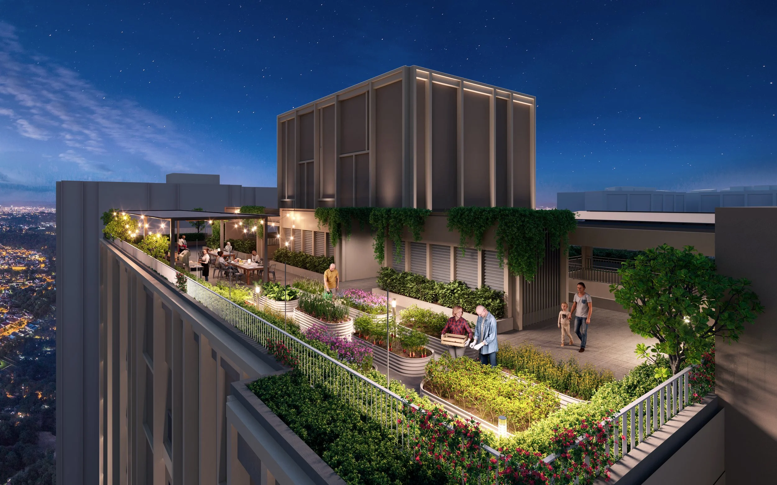 The Game Coliseum (games room), Karaoke Vault, and Hoop Court (half basketball court) are the social anchors. The Karaoke Vault is an unapologetically Malaysian amenity, and in every condo where it exists, it gets heavily used. The Grill Alcove (BBQ area) and Garden Nook (landscaped seating) complete the social spaces.